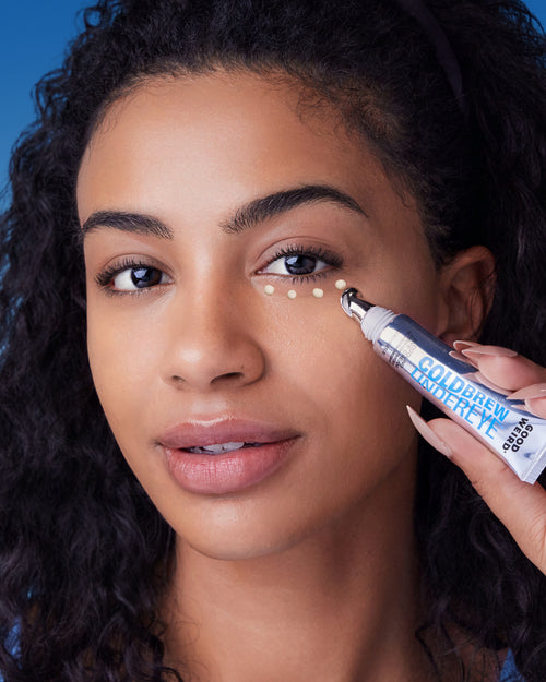 Coldbrew Undereye is our cooling, caffeine-infused eye cream that wakes up tired under-eyes fast. The metal tip instantly soothes puffiness, while the lightweight formula hydrates, blurs, and brightens like a dream. Goes on smooth, dries down velvety, and plays super nice with concealer.